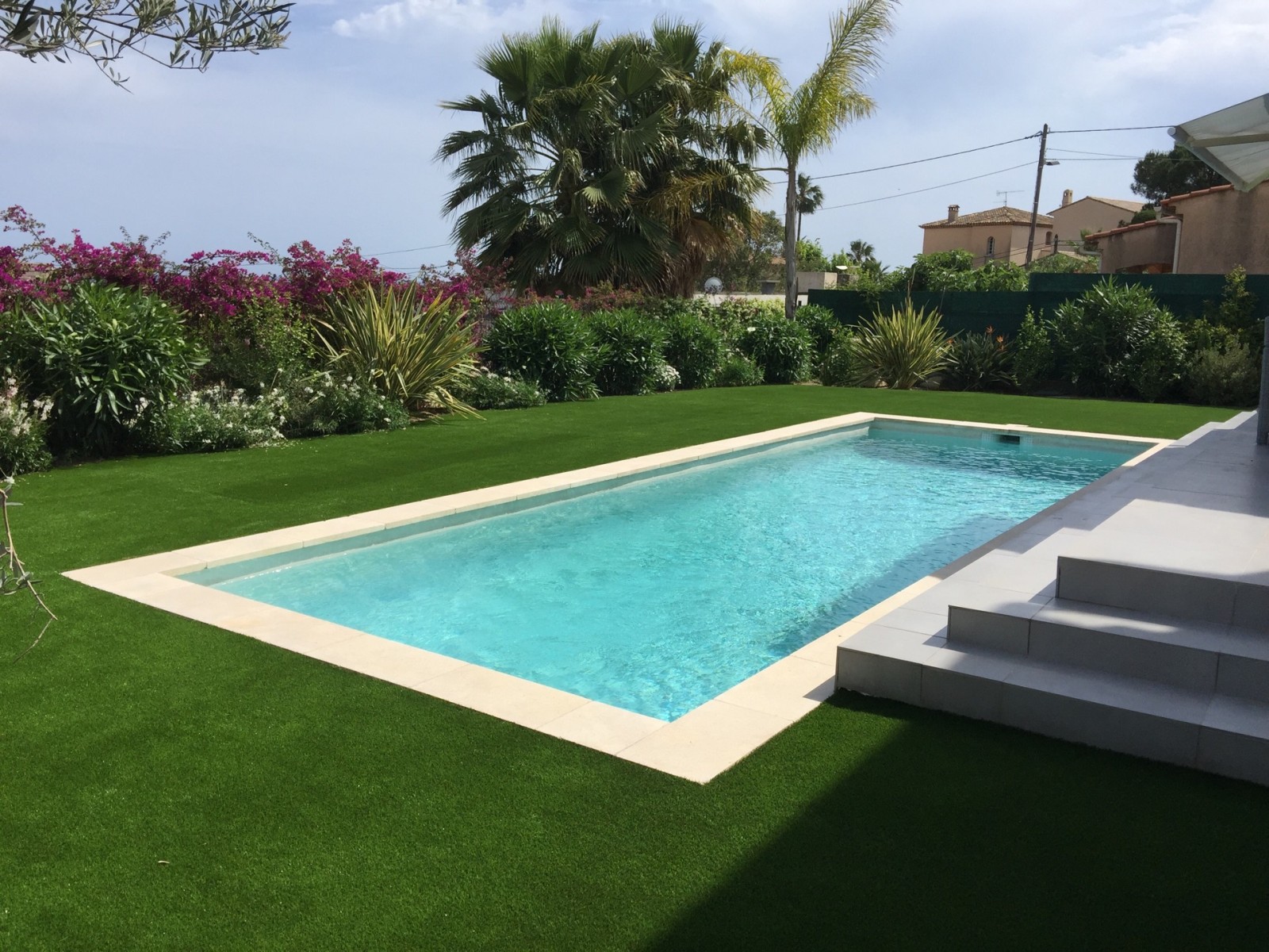 Aménagement d’une pelouse synthétique autour d’une piscine à Vallauris