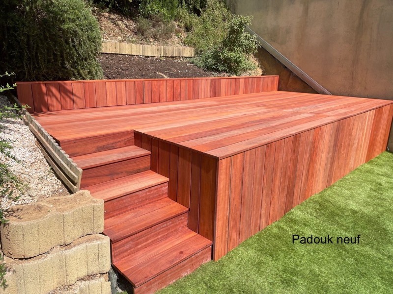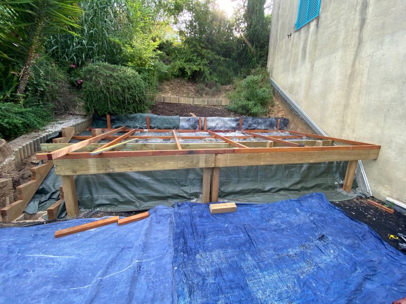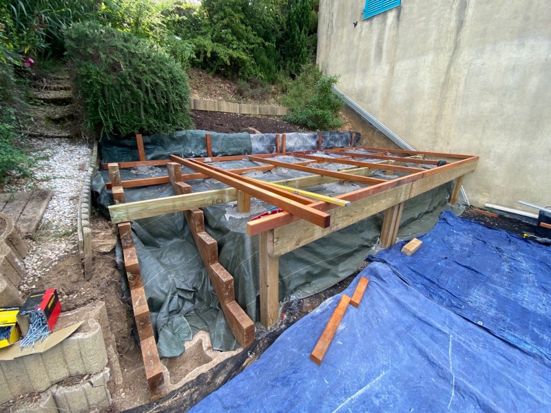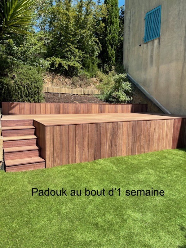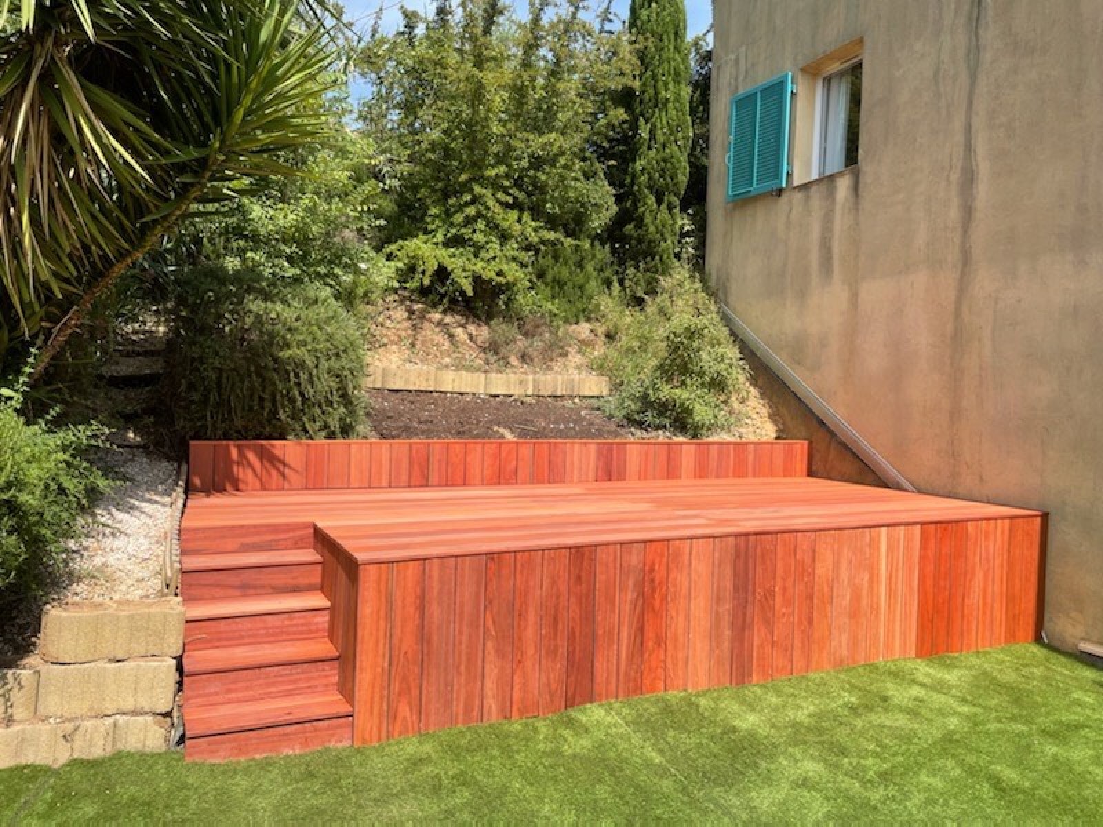 Réalisation d’une terrasse en Padouk dans un talus à Cagnes sur mer